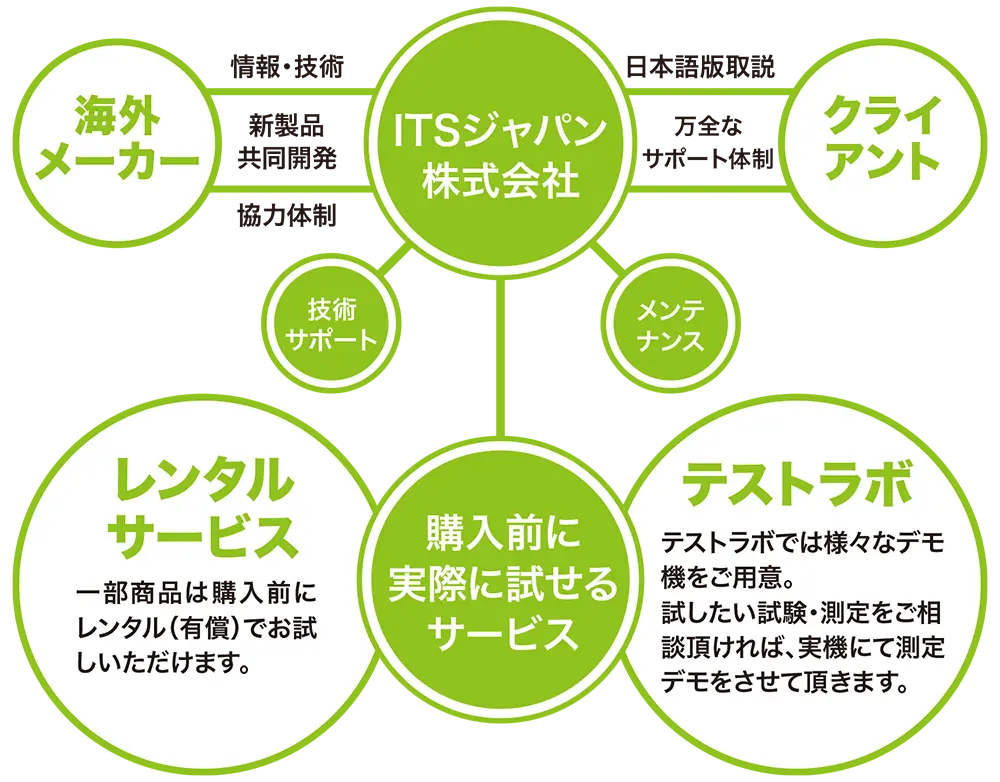 アイ・ティー・エス ジャパン株式会社では、販売した製品全てに国内メーカー同様のサポートを提供しております。製造メーカー協力のもと、弊社内にて修理・メンテナンスを施していますので迅速な対応が可能です。また、故障しやすい部品などは国内にて在庫もしております。もし、専門の技術者が必要な場合でも、製造メーカーから専従スタッフを招き修理することも可能です。皆様に安心してご活用頂くために最善を尽くしてサポートさせて頂きます。